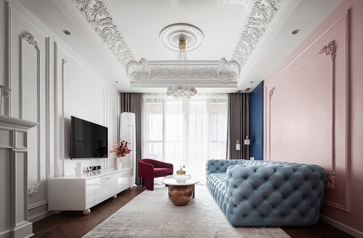 法式风格的优雅、浪漫、宫廷感深入人心、经久不衰,与现代时尚的轻奢风相遇后,则凝结成一种文艺典雅、与众不同的空间意境。