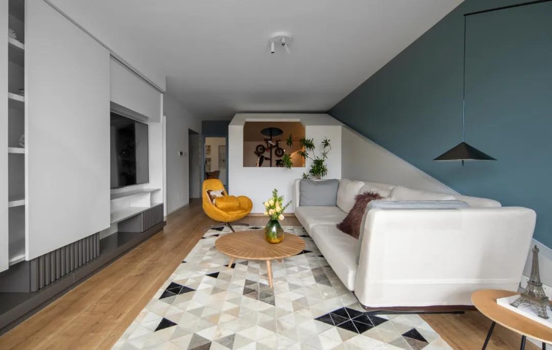 这是一套面积为120平的住宅,一家三口居住。男主从事IT业,平日喜欢摄影;女主是一名大学教师,平日喜欢烘焙和咖啡;家里的小朋友刚刚年满四岁,处于成长阶段;家庭成员还有家两只猫咪。对于新家,夫妻二人期望新家赋予温暖、生机、充满生活的气息。设计师巧妙地利用日式清新和北欧风的少量家具点缀,营造了温暖不失现代的氛围。