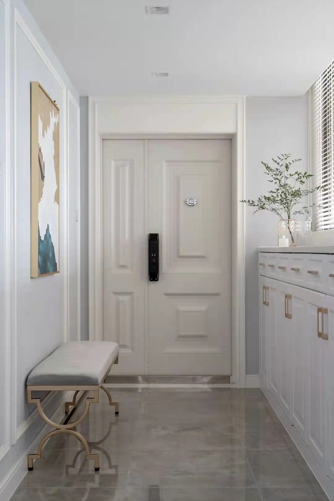 推开入户,精致轻奢气息扑面而来。设计上兼顾了收纳盒采光。
