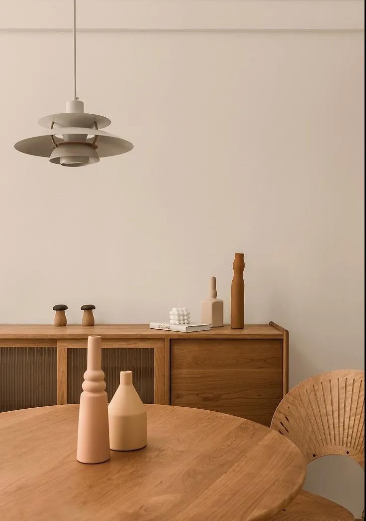 精致的木质餐桌椅和餐边柜,温润质朴。