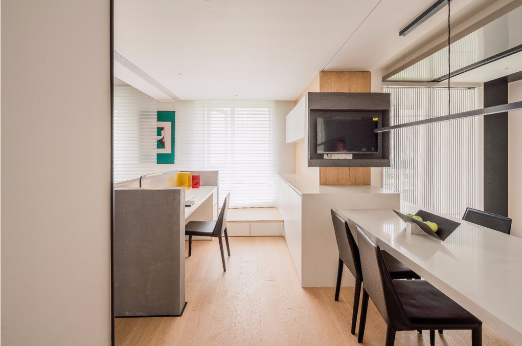 主卧由原先的客厅变身而来,纵向上将原先的阳台,变成主人的私密书房,横向则借了原先主卧一堵墙的空间