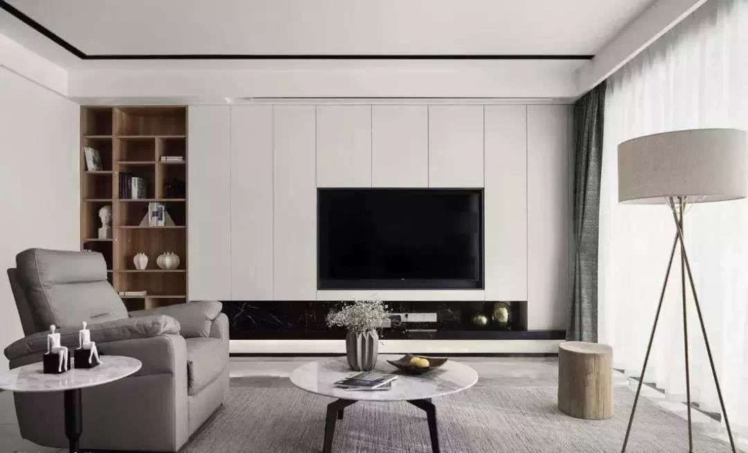 整体式的电视柜储物柜一体式,客厅更加简洁开阔