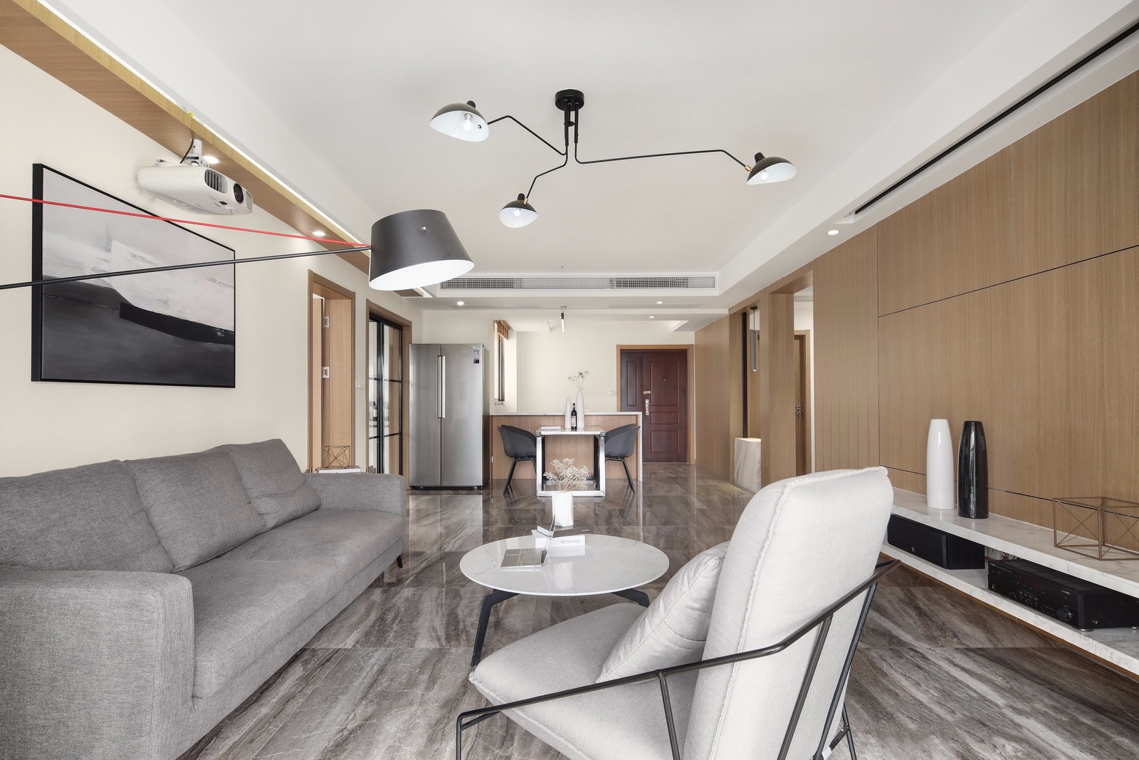 在整体空间的颜色搭配、家具风格选择都是统一、和谐的,在细节之处,处处透露着精致。