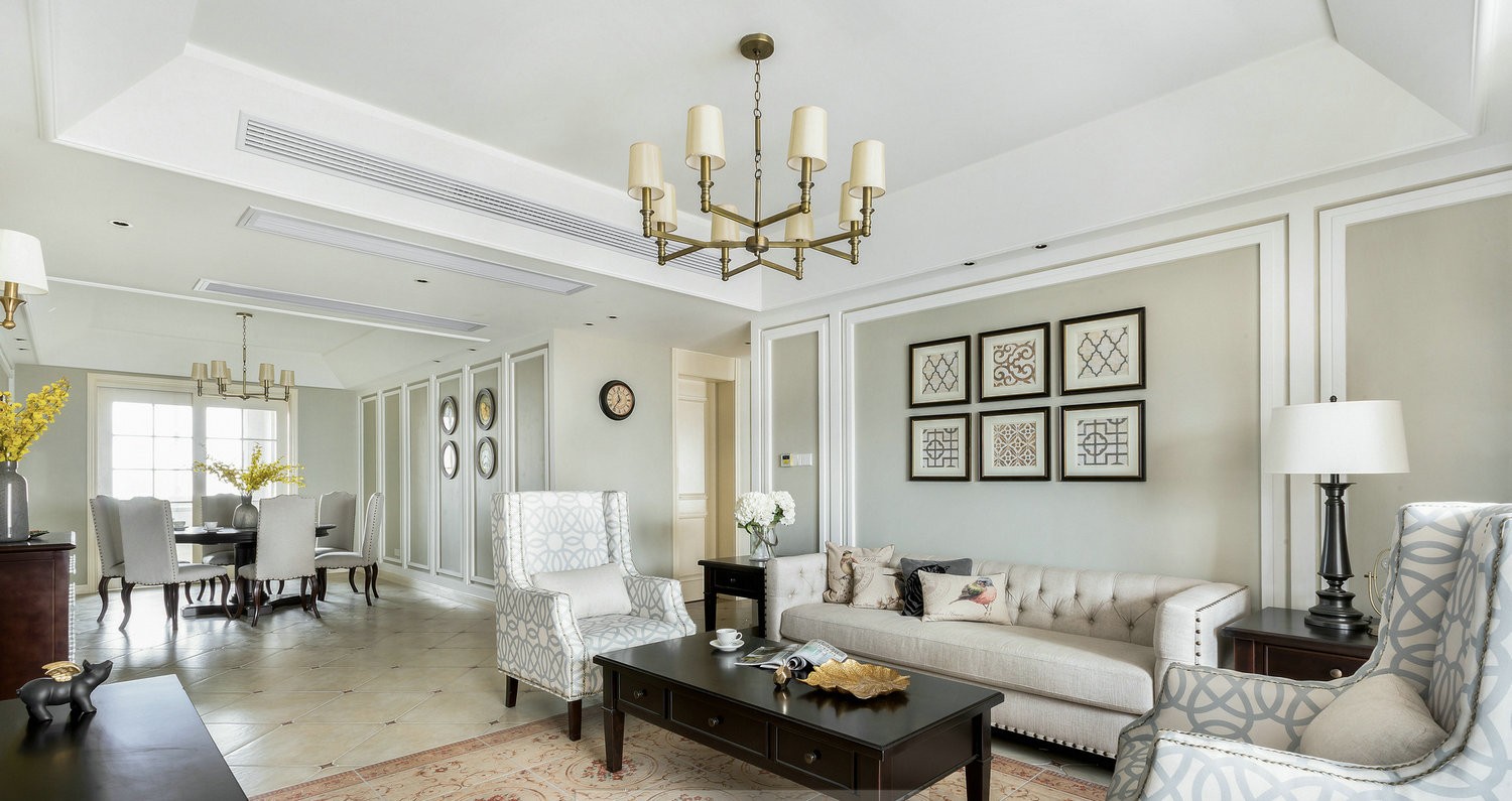 小美式装修风格特点。客厅简洁明快客厅作为待客区域,一般要求简洁明快,同时装修较其它空间要更明快光鲜