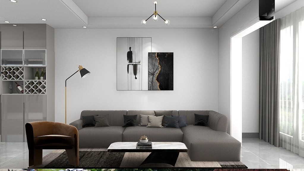客厅作为主空间,融入了自身的娱乐休闲功能
