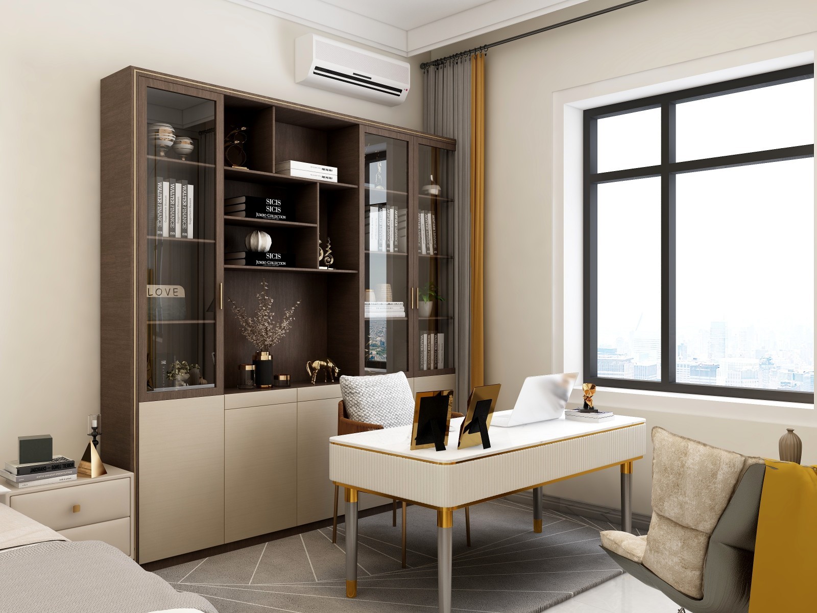 沙发与阳台之间空间设置了展柜使空间更饱满和谐