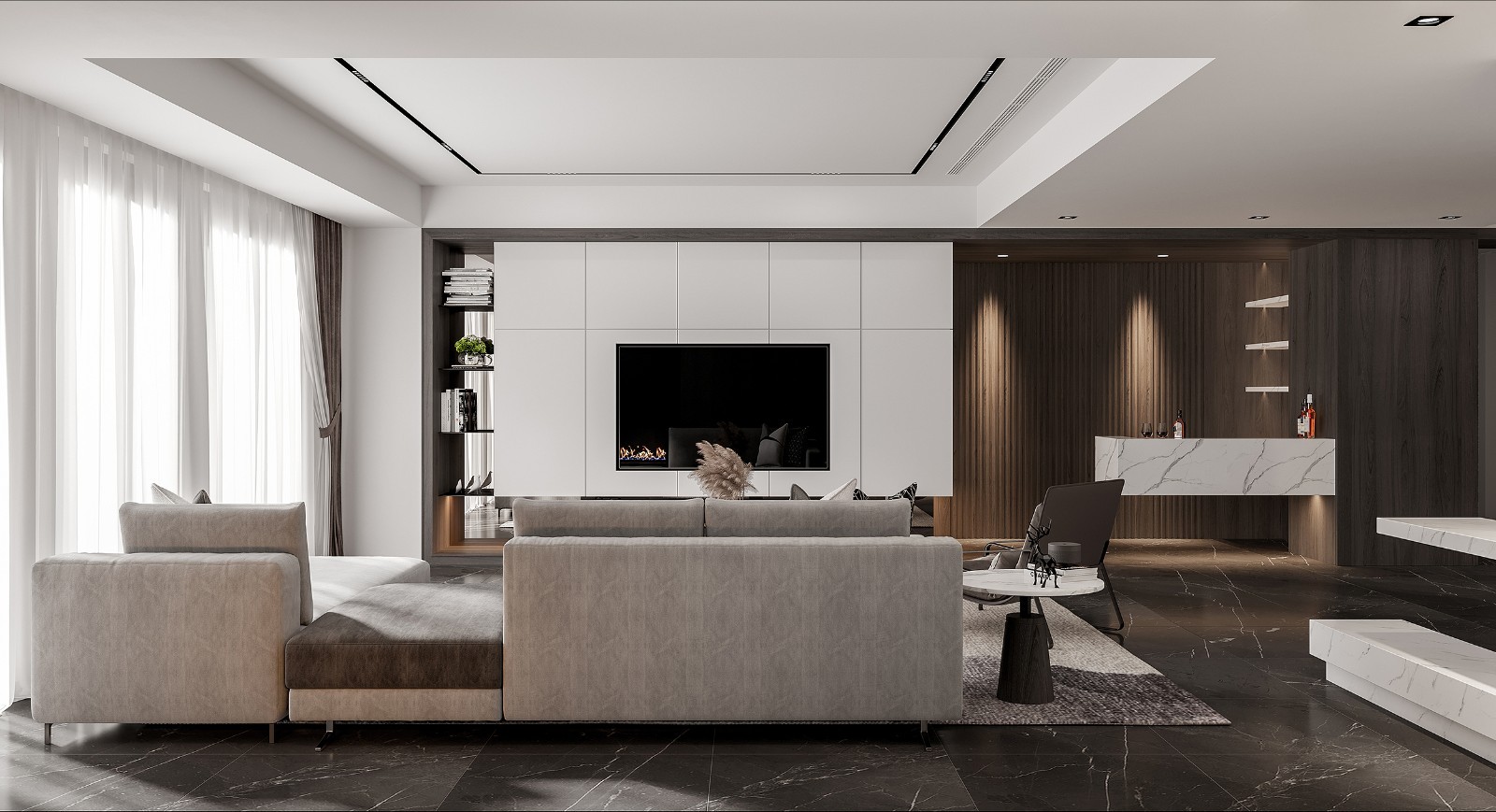棱角块面分明的简洁,半开放式的设计在考量互动体验之余,也让空间尽显纯粹、干练。