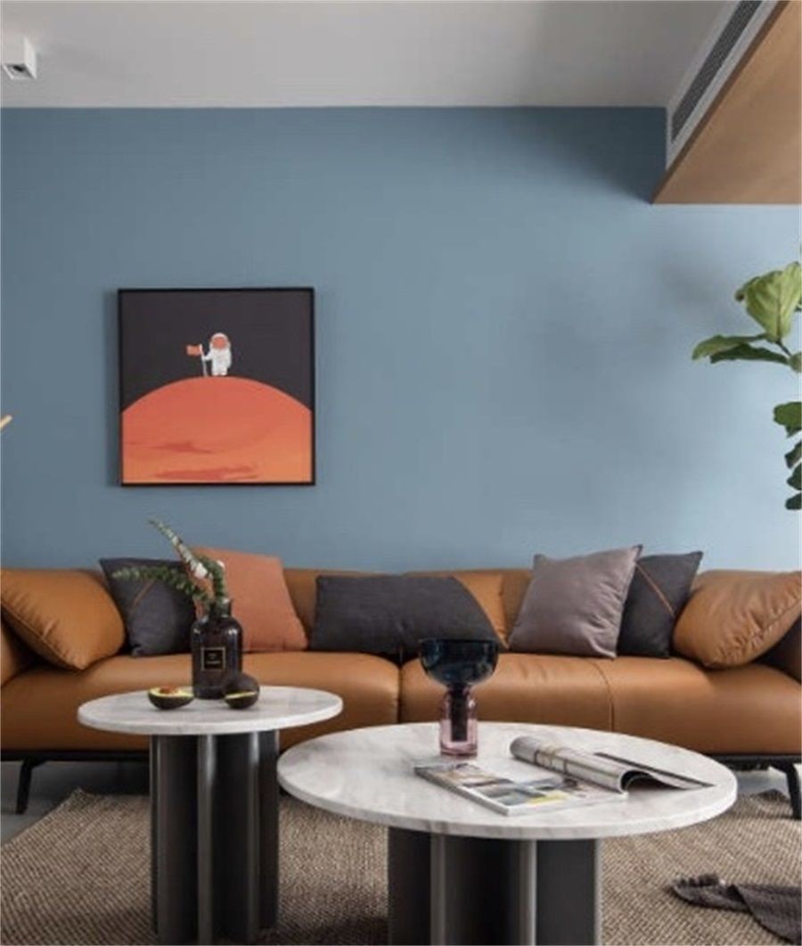 在家具的选购中,我们可以看到地毯、茶几、沙发、挂画、灯具与硬装层次变化,突出材质之间的碰撞,治愈的绿植搭配,让这个家更像一个可变化的空间,在审美上具有更好的持续性。