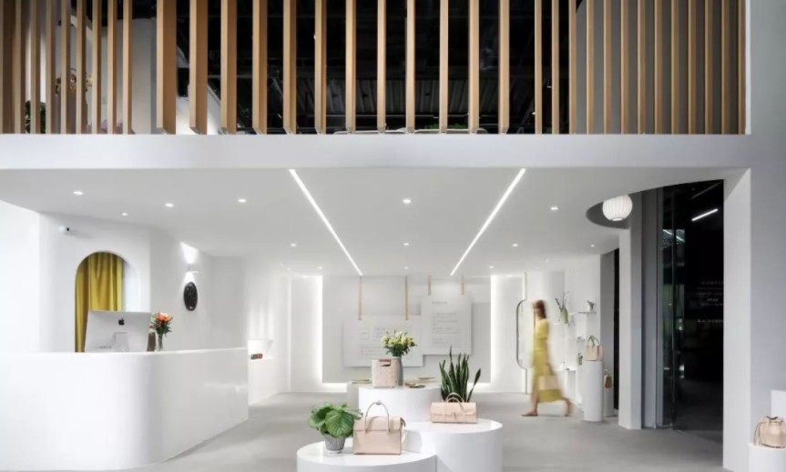 风格上简雅凸显自己产品的优势,更多空间留白的目的,达到后期灵活性的目的,不管空间分割还是色彩搭配以及灯光处理,都能更好达到配合!玻璃穿透过物品陈列再延伸至室内空间的洁简,视觉观感更能吸引眼球!