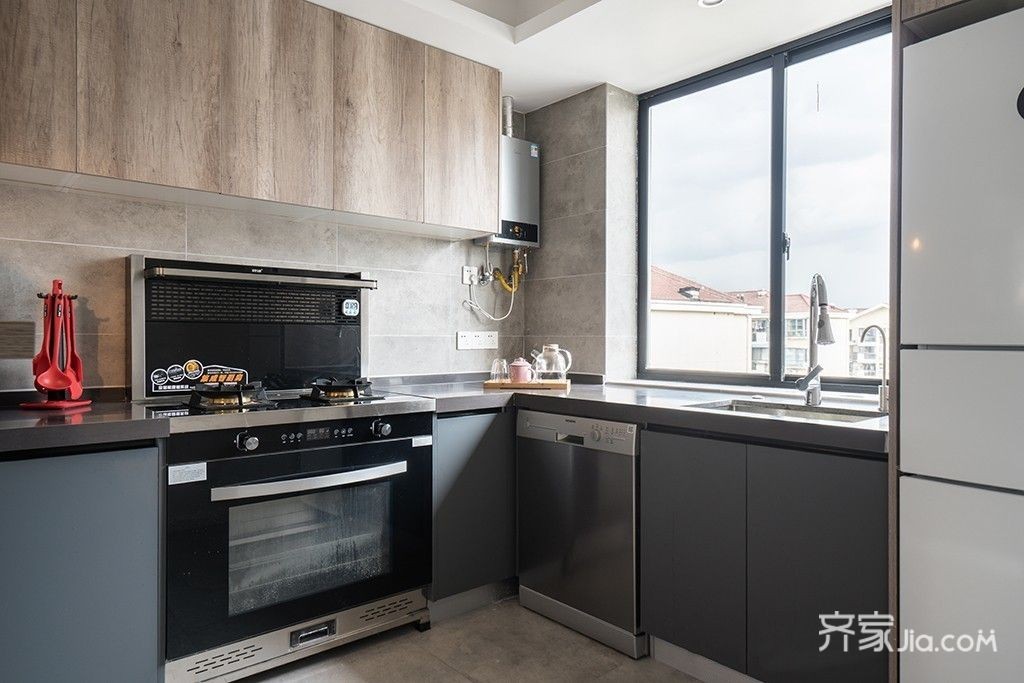 半开放式厨房的设计视觉上拉长了整体的空间感
