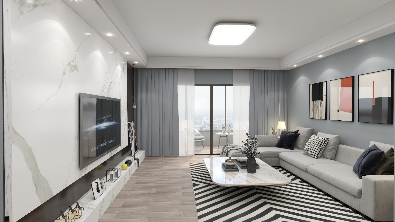 卫生间内没有做干湿分离的设计,整个空间的面积也足够宽敞,水汽问题不是很大。独特环纹的墙地砖让卫生间看起来更有几何感。