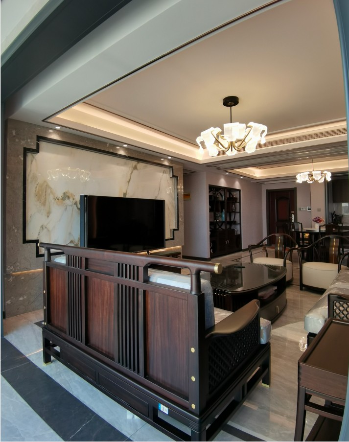 本案是为一位成功人士设计,户主性格沉稳,喜欢中国传统文化,工作稳定,事业有成。主要设计特点为新中式风格,室内多采用对称式布局方式,格调高雅,造型简朴优美,色彩浓重而成熟。