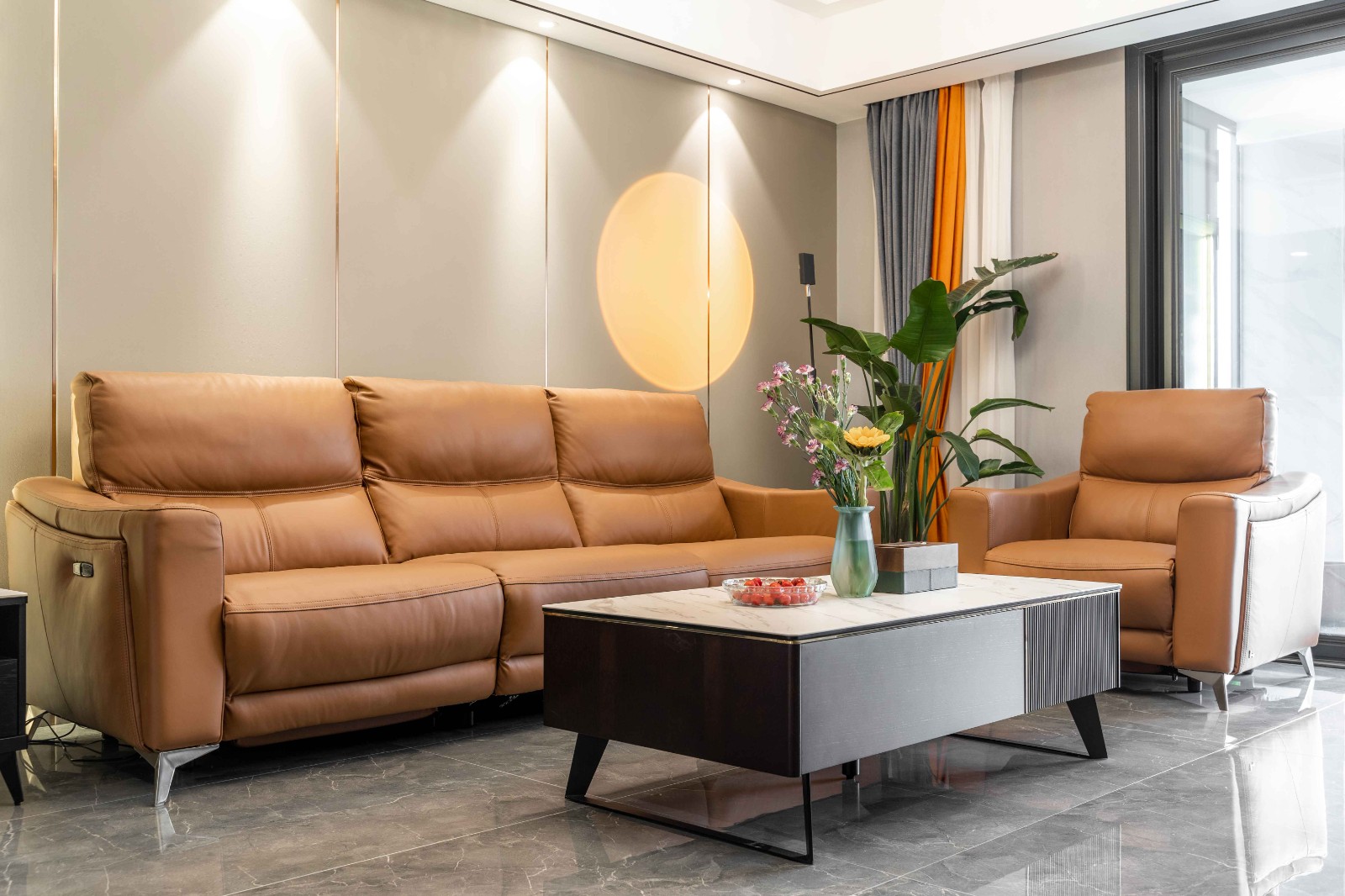 一盏落日小灯,使沙发背景墙如沐余晖。落座沙发,被这抹暖黄色包裹拥抱的感觉,浪漫的温馨感溢满身心。