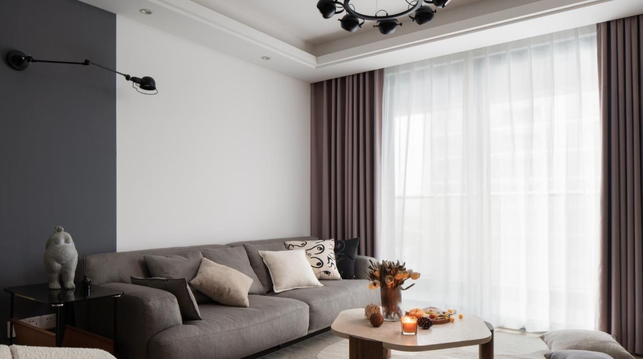 客餐厅一体的空间,要考虑功能区的尺寸划分。客厅选用三加一的组合沙发。