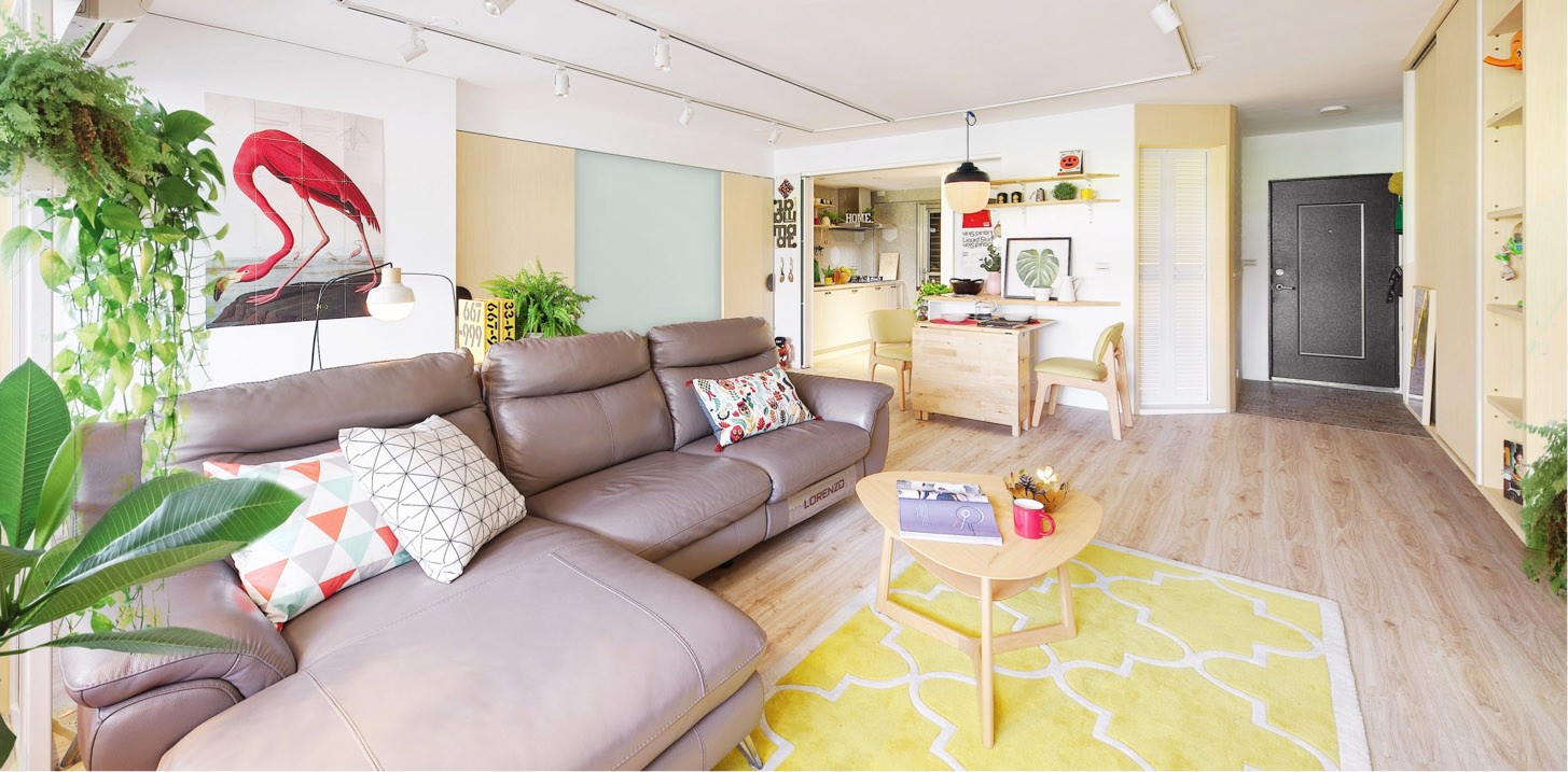 为了孩子的玩耍直接舍弃固定式的餐桌,改为折叠餐桌,满足常用的三口就餐环境即可。