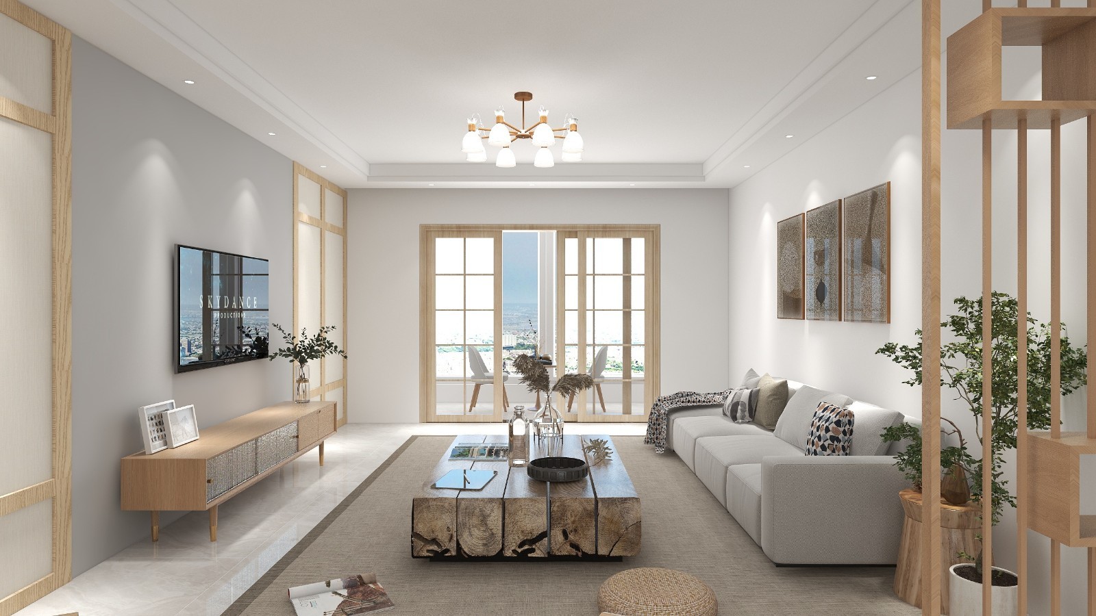 客厅使用本案为4居室设计,风格定位为日式原木风