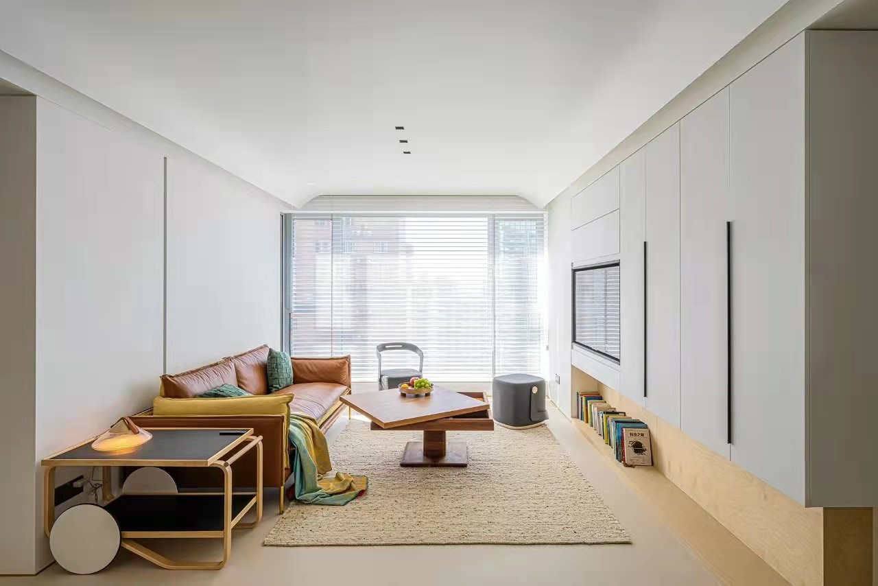 独特的软装家具在空间中也发挥了独有的气质,尤其是胡桃木的茶几,就像积木一样可以旋转变换。
