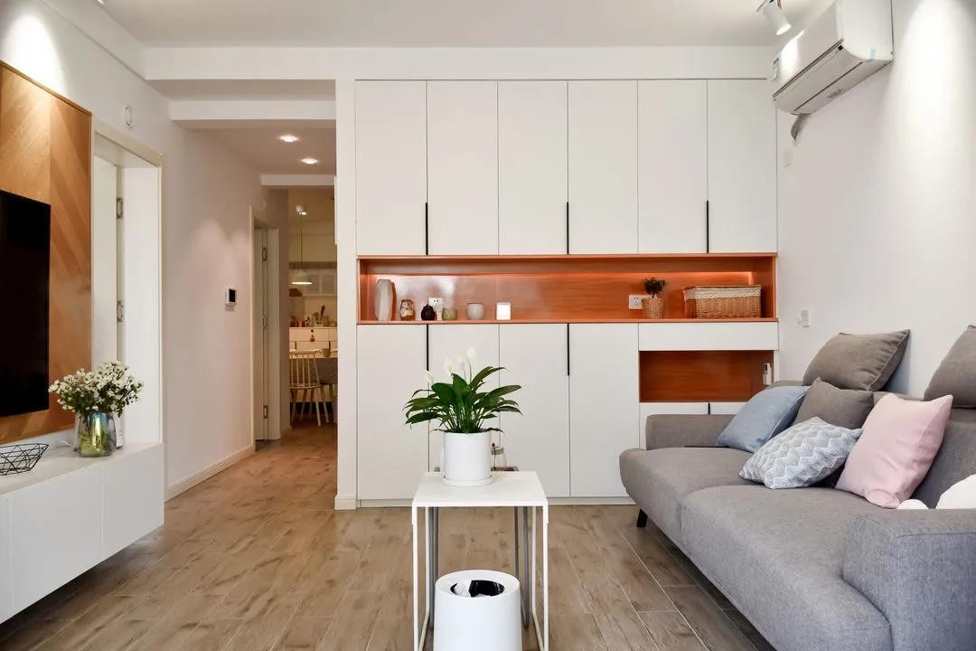 收纳柜让公共区域更加整洁干净。各种生活用品和杂物,都被隐藏在内,看着都舒服。