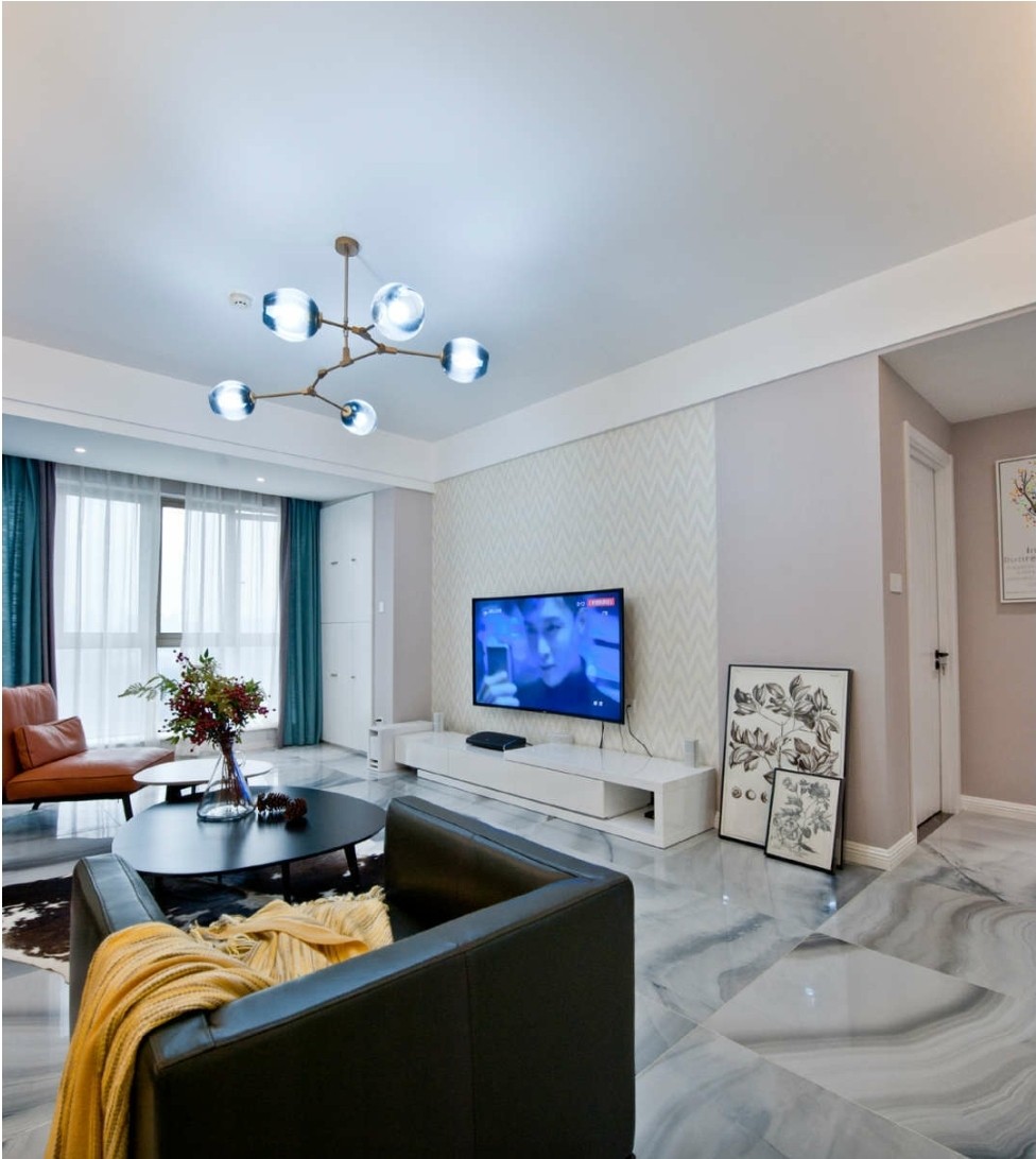 整体主要采用灰色、白色、木色以及黑色做为点缀进行合理搭配。