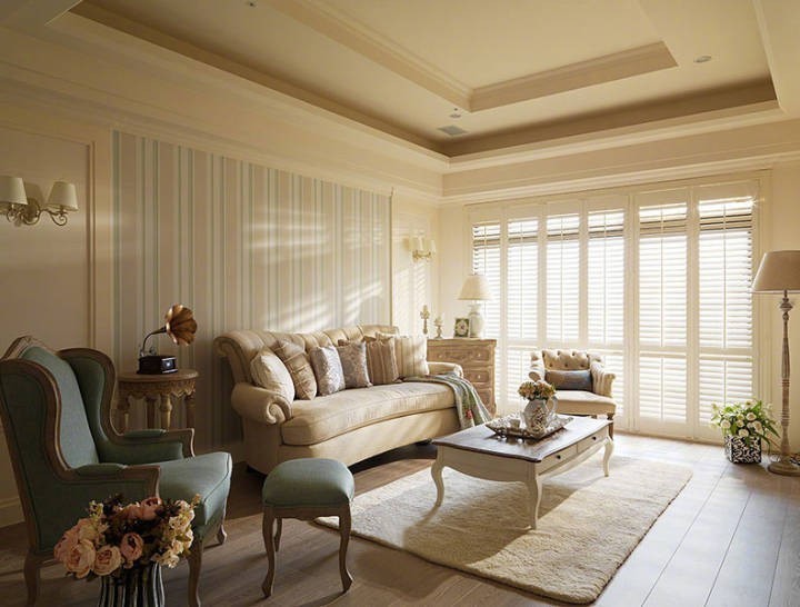 屋主人是做旅行行业的,去法国回来后一直对那里恋恋不忘,平时也比较喜欢西欧那边的建筑设计以及居室环境。因此这套四室两厅的房子把风格定格在法式,带有浪漫情调的风格