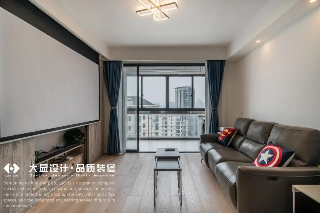 木地板的触感舒适,皮质沙发柔软惬意,客厅这里使用投影,相较于电视更有一种家庭影院的感觉,业主夫妻可以在闲暇时间窝在沙发上打游戏看电影等,都是一种不错的选择。