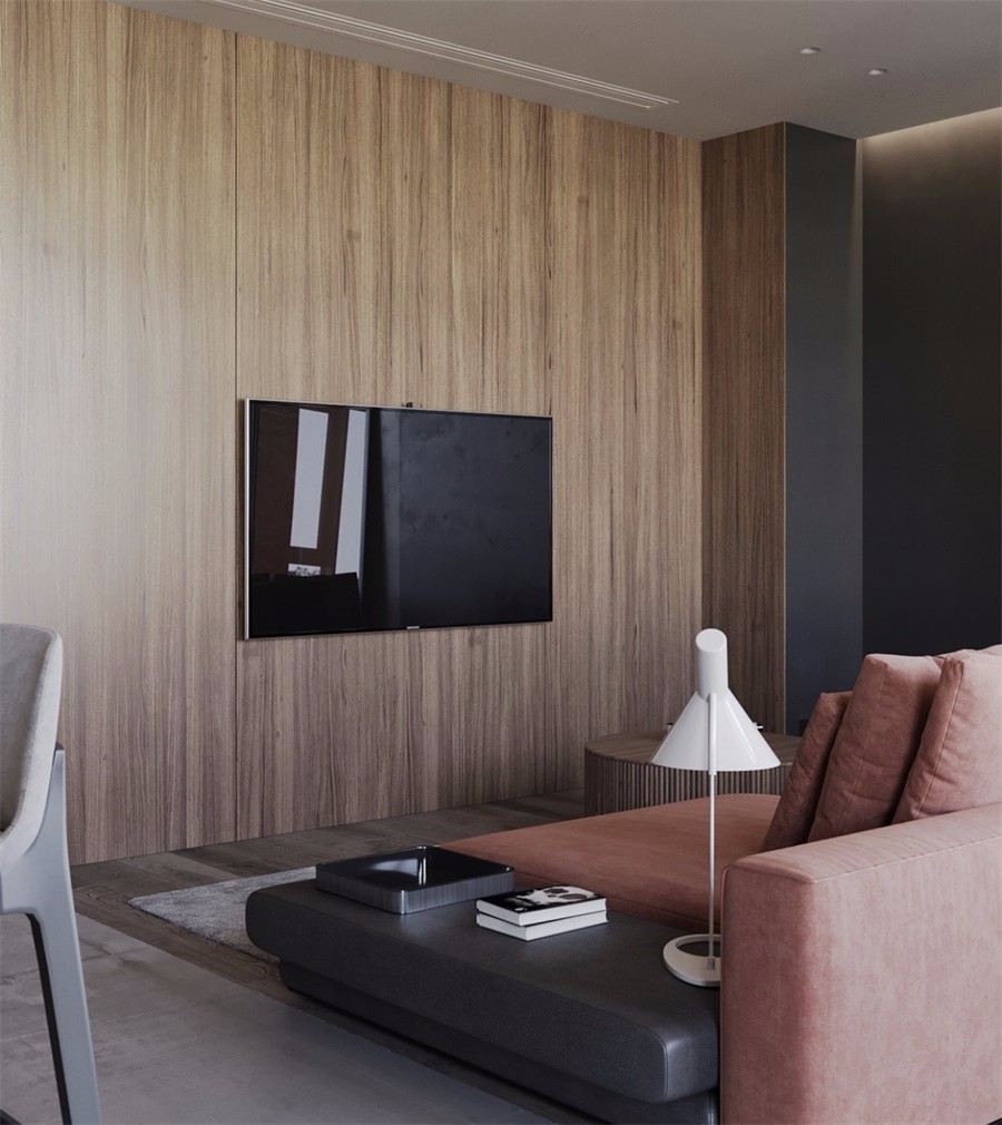 客厅一体化设计,没有设置隔断,减少了空间的压抑感和拥挤感,视觉上也更加通透