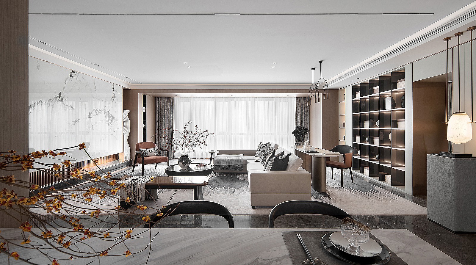 食饮有节,起居有常,膝下欢、享天伦,大开大合的空间布局,餐饮文化的中西合璧,一花一枝,一桌一椅,让就餐的整体感和仪式感就此打开,方寸之间至诚尽性。