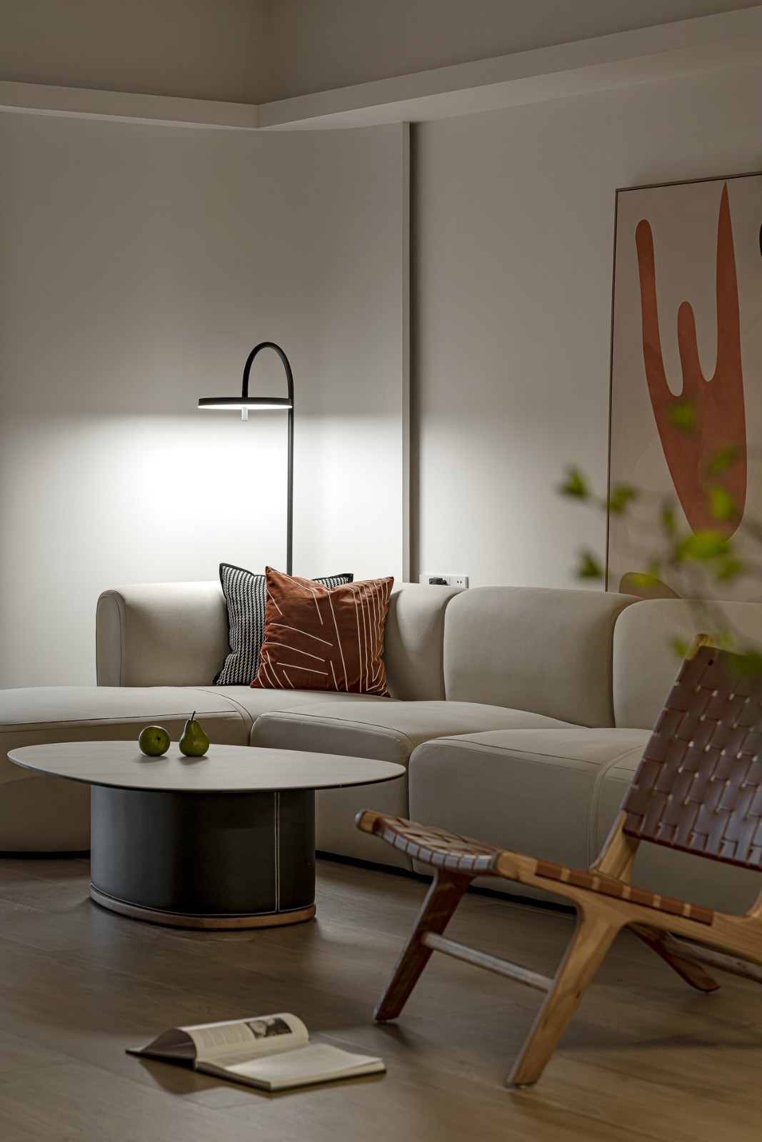 圆润的弧线,柔美的氛围,充满浓厚的治愈感。灵动色彩的挂画给宁静的空间增添平衡感,动静相互制衡,有条不紊。