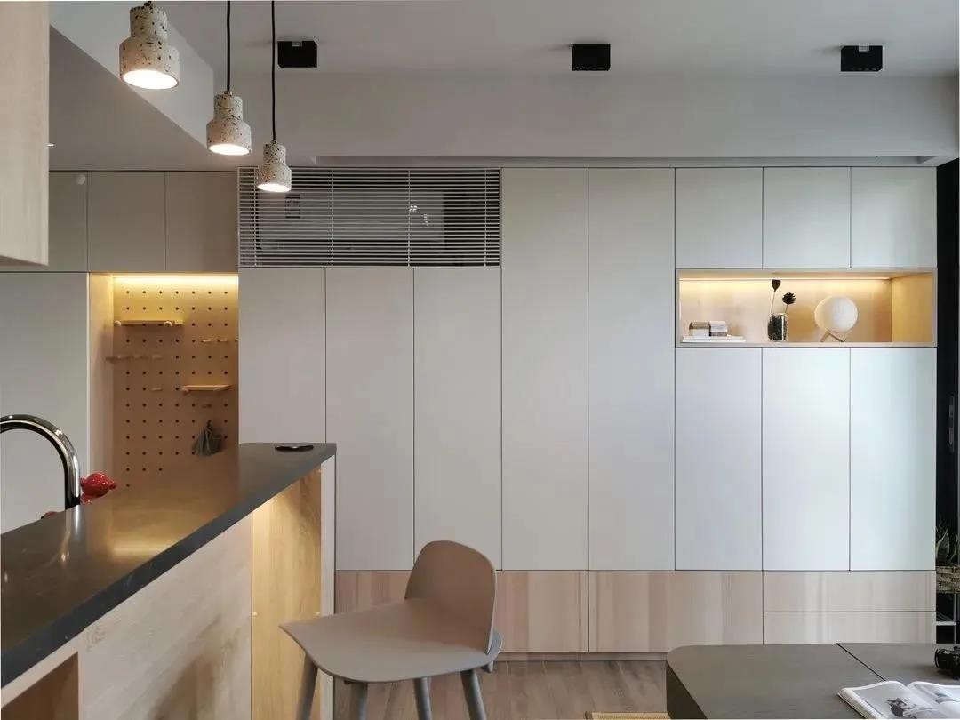 家中分为中西厨,西厨与餐厅相连,搭配整面餐边柜,储物拿取相当方便。
