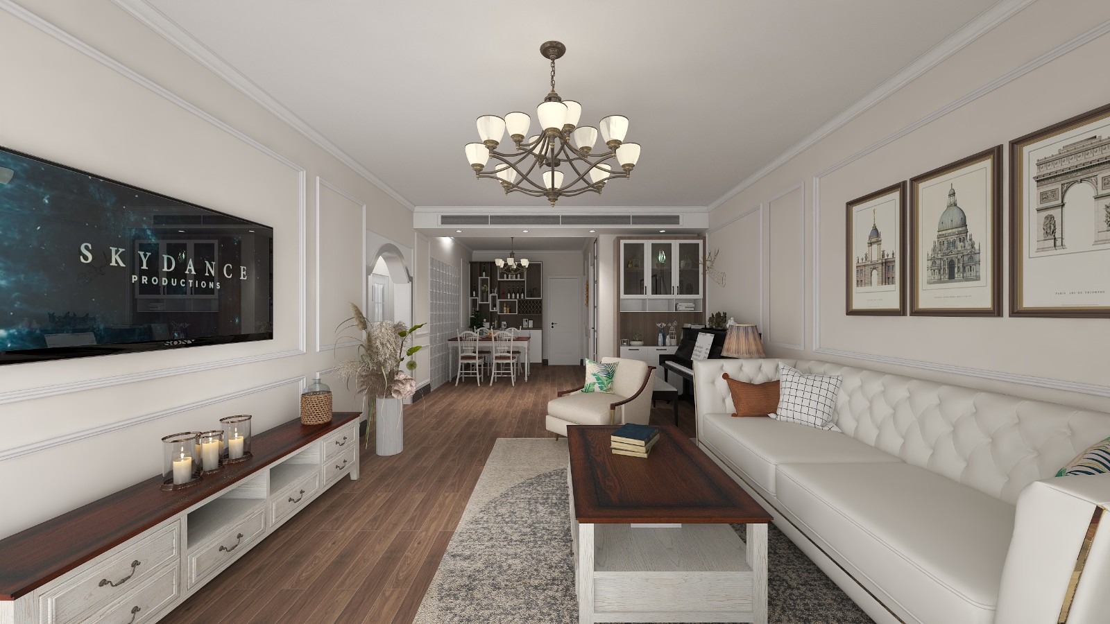 该方案户型不动,在户主家原有基础上用设计提升空间整体氛围。为配合家具风格装点空间效果,整体为简美风格,空间中装饰线条简单,色彩明快,给人一种温柔的浪漫的感觉。
