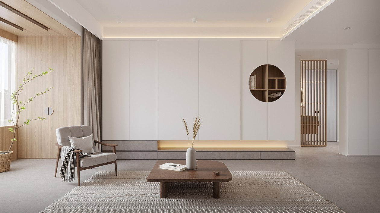 客厅色调清浅而纯粹,原木色的运用给整个空间带来温润的触感。