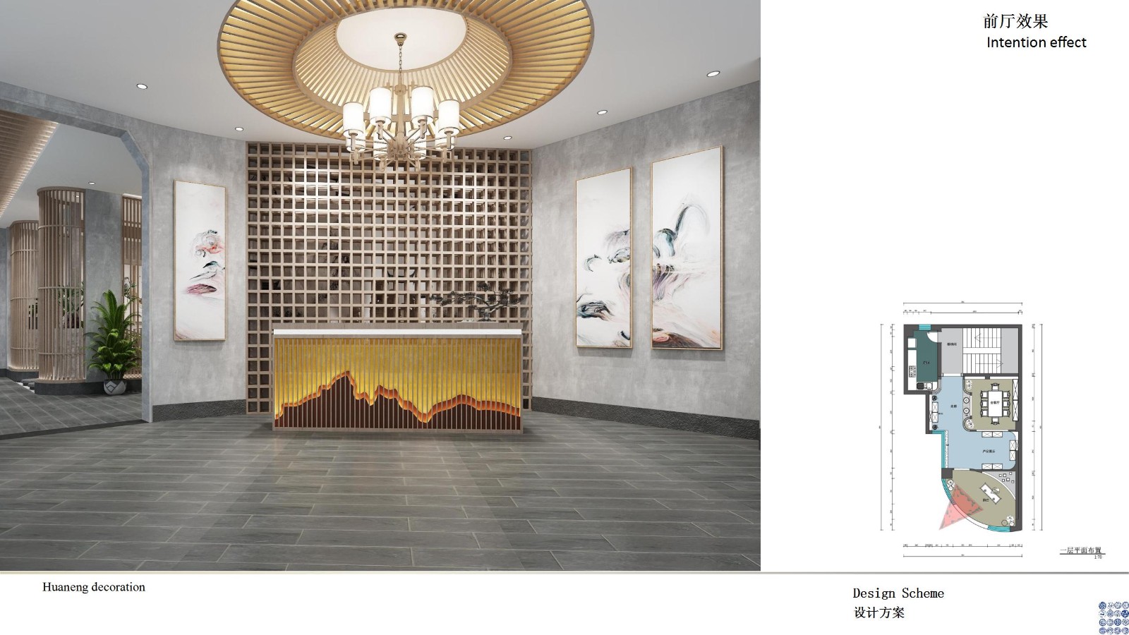 本 案中以中国园林美学的眼前有景,曲折尽致,繁简疏密的设计手法表 达空间,经过藏景与借景,光与影的组合在现中国古典民间的中式风 格,有别于古典宫廷的中式风格,体现可行、可游、可望、可居的流 动空间