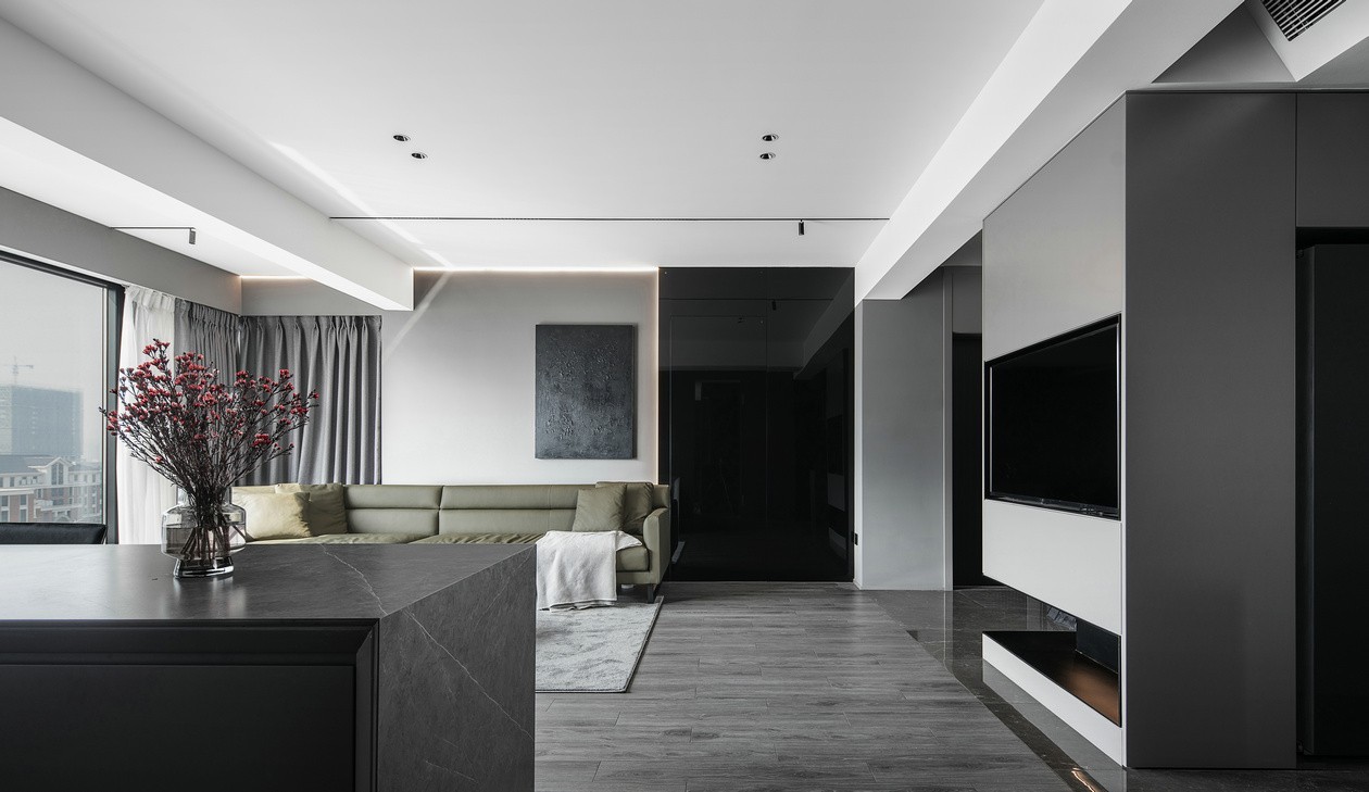 主基调采用大面积的黑灰色质感元素,以干净简洁的设计笔触勾勒出清晰明了的线条,用一种清醒克制的姿态完成了空间与生活的融合,传达出艺术与生活和谐相处的美好愿景。