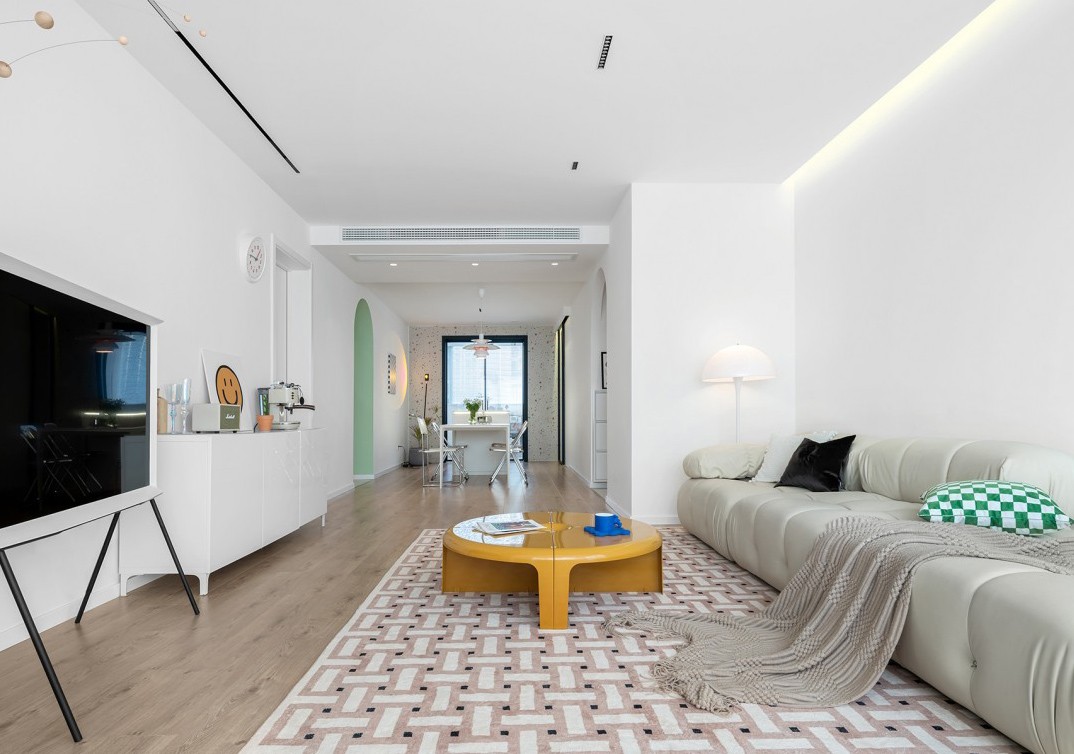业主小姐姐喜欢温馨的家居氛围,很珍惜和孩子们围坐在茶几边看动画片的时光。一张地毯,让一家人可以席地而坐,浑圆的沙发和茶几不仅代表了童趣,也在生活中源源不断地散发柔软舒适的气质。