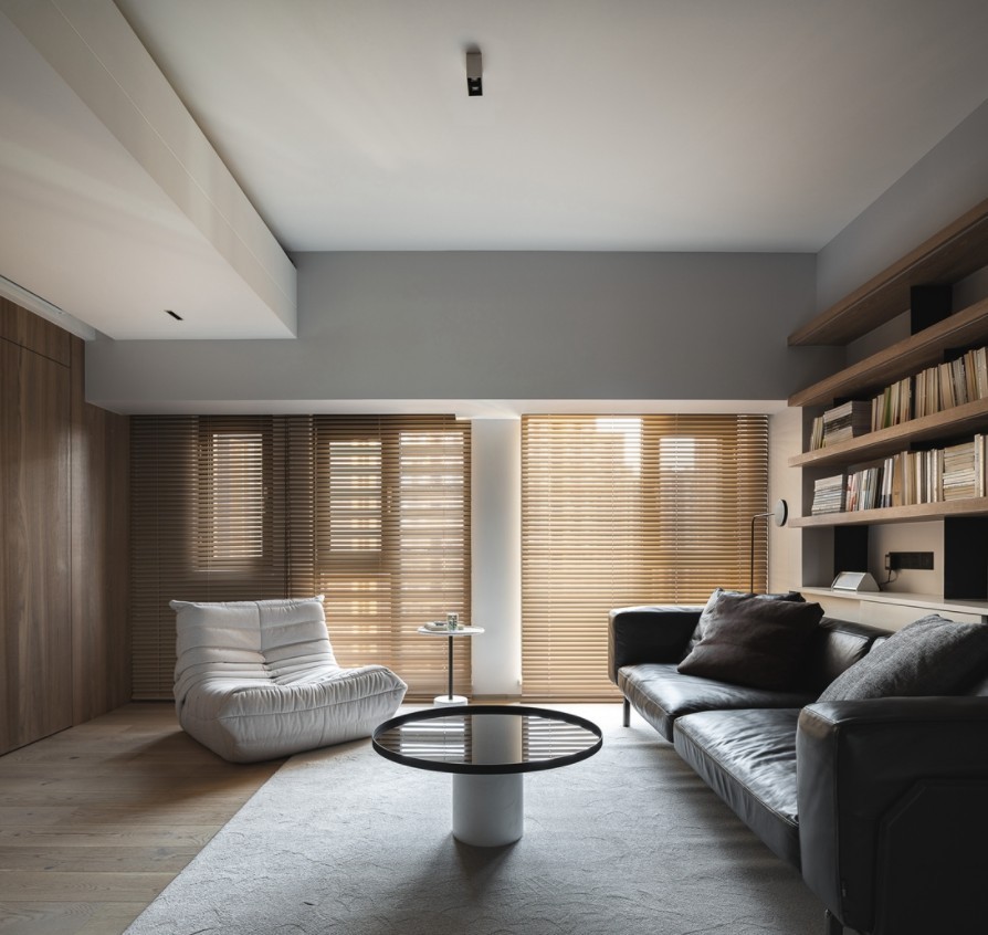 谧质感的居家氛围。皮质长沙发可以同时容纳一家三口,圆形镜面茶几方便平时打理。