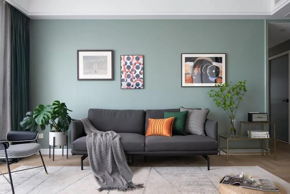 客厅的灰绿色墙面带给我们别具一格,怦然心动的感受
