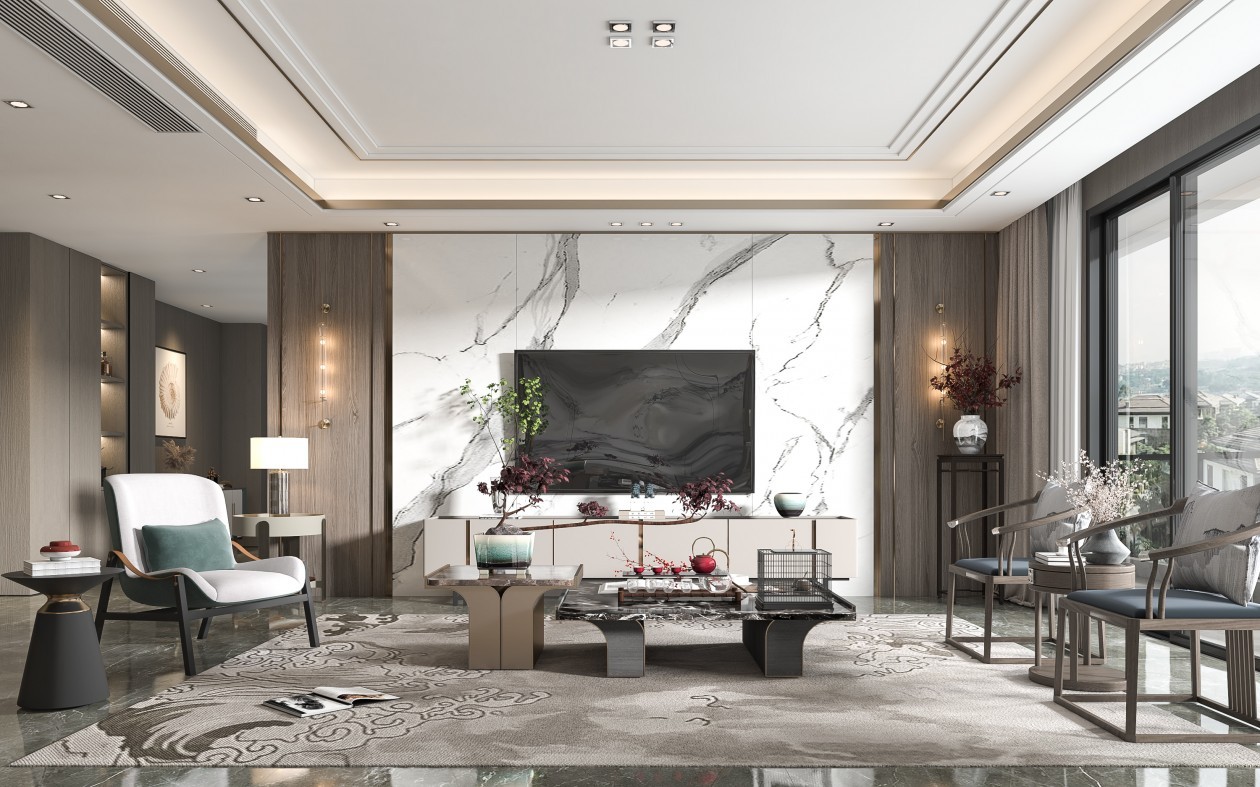电视墙可以做木饰面隐形门加岩板瓷砖上墙。