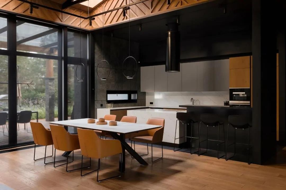 设计师在设计时使用了精致的家具与干净的线条在空间内实现日式极简风格与乌克兰传统元素的结合,利用自然材料,打造了一个富有氛围感的空间,大气而有格调。