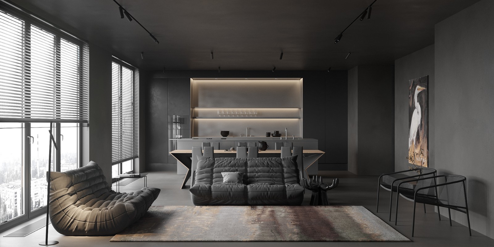 简单的吊顶搭配干净利落的配色,把现代***灰体现得温润而精致