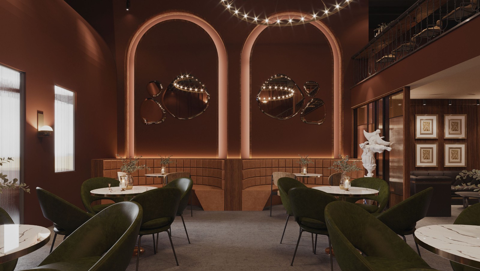 二楼卡座区 整个设计以暗红色为主,没有做太多的造型。