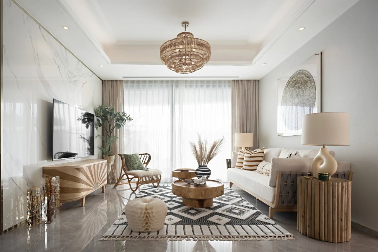 一切都那么的慢条斯理,但处处彰显完美,原木的色彩与藤编的***感,拼接空间的几何纹样。