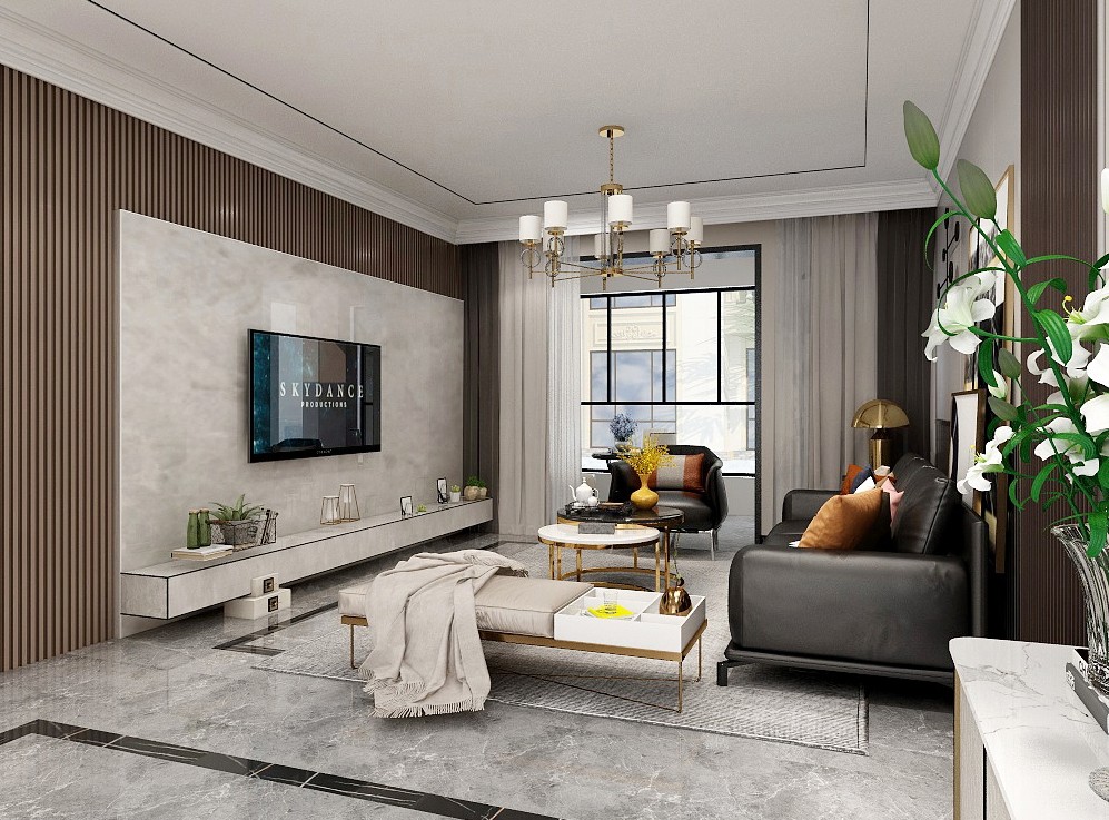 客厅里的线条简洁明朗,经典的黑白家具,搭配浅咖色墙壁,将轻奢与温馨表现得淋漓尽致。