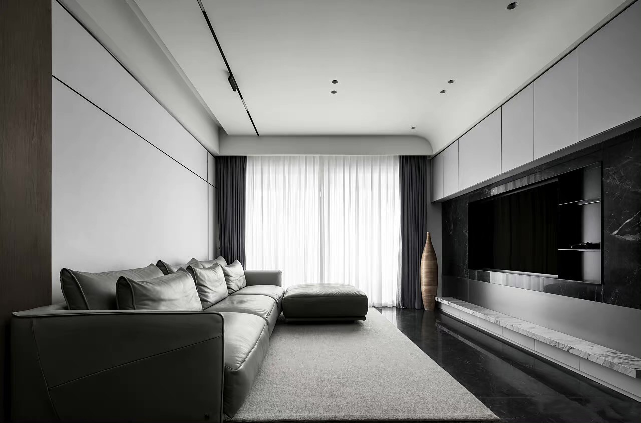客厅是舒适的休闲会客区,采用经典的黑白灰三色组成,带来沉稳且宁静的氛围美感。