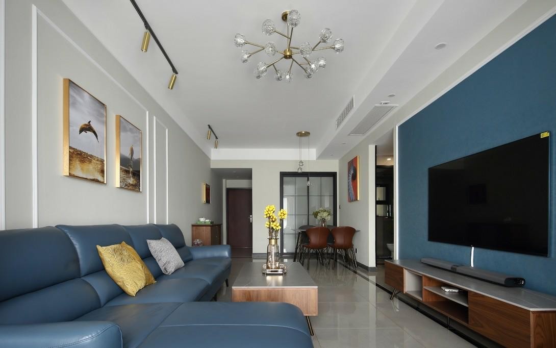 整体以海蓝为主调,金色为辅,打造简约混搭式的小三居。