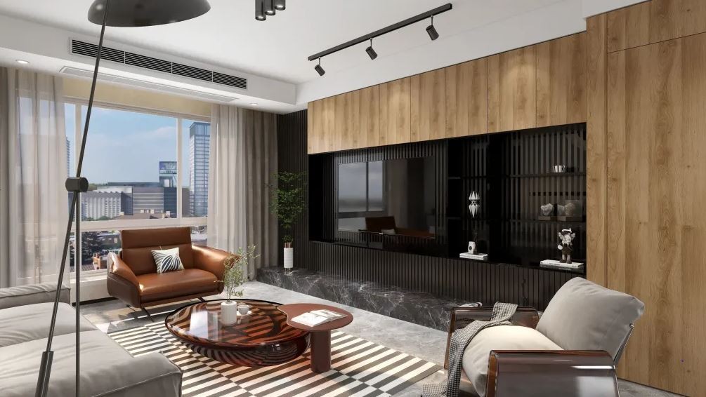 采用无主灯设计,大面积用了原木色为主色,为整体风格提供了一些温馨