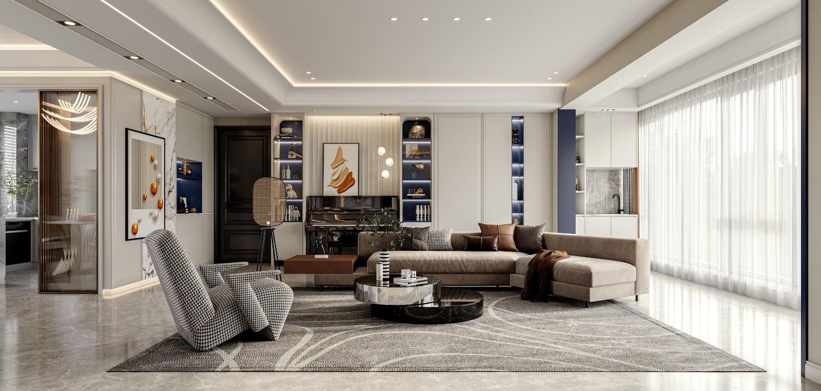 家,原本就是互相包容磨合的空间。 屋主夫妻俩一直居住的房子是优雅浪漫的轻奢风格;而他们的女儿则希望未来的家不必太复杂,是简单明亮但足够好看的模样。 设计中和了屋主一家三口在审美上的不同,将古典优雅的法式简化,以简明的线条,刻画出华丽却并不复杂的墙面。 没有多余的造型,只以不同色彩的涂料勾勒出一个优雅精致的家。