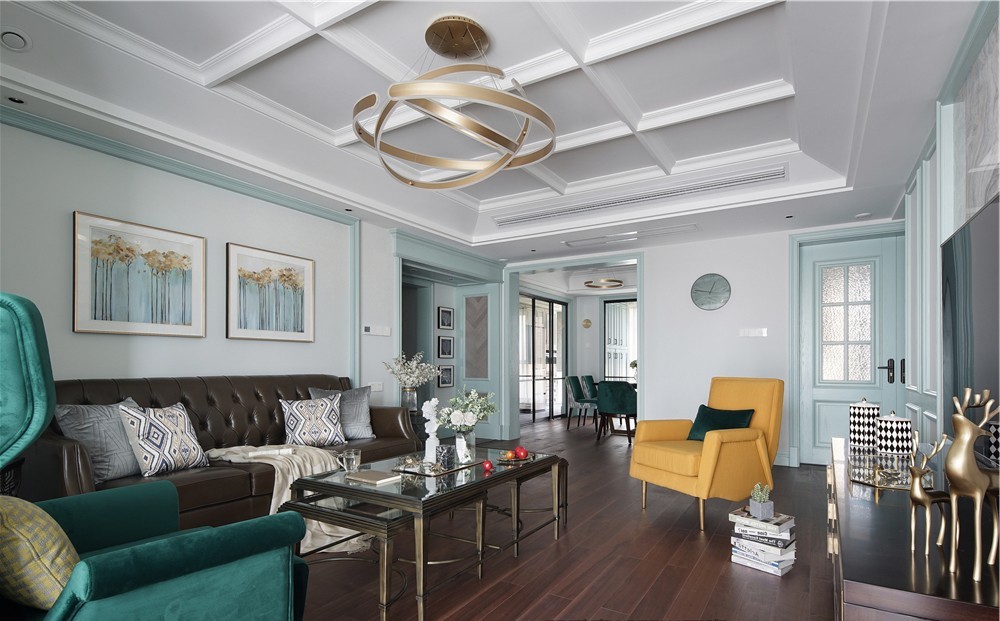 客厅空间色彩搭配跳跃而又不失沉稳。