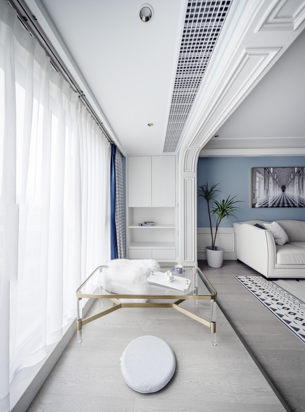 蓝白经典组合的简洁张力配搭温和金色的柔性美感