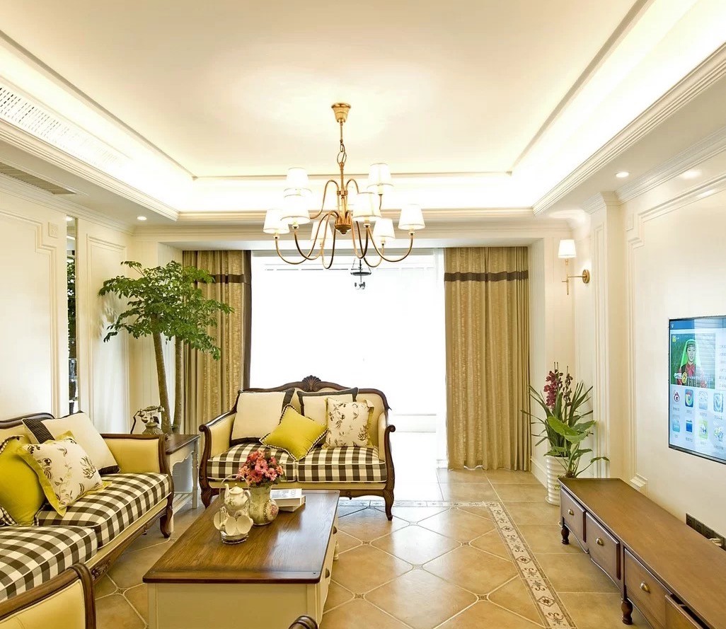 看似复杂却又简单的吊顶,使空间增加了层次感,石膏线的背景墙。