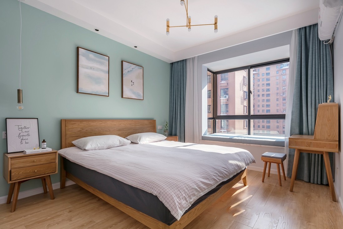 卧室和客厅统一风格,选用的莫兰迪绿色。
